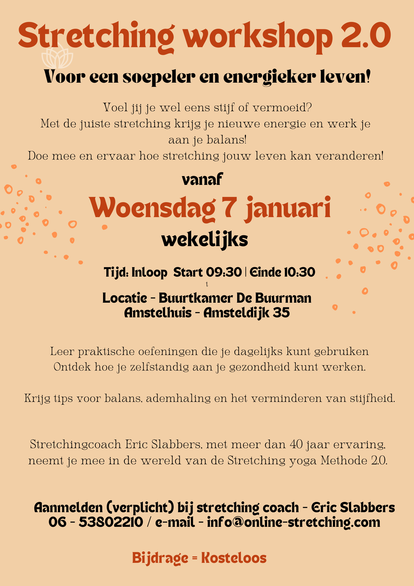 Stretching yoga in De Buurman 08.01.2026 Stretching Yoga – elke woensdag 09.30-10.30 uur in Buurtkamer de Buurman – later instromen is geen probleem. Print Mail Reageer